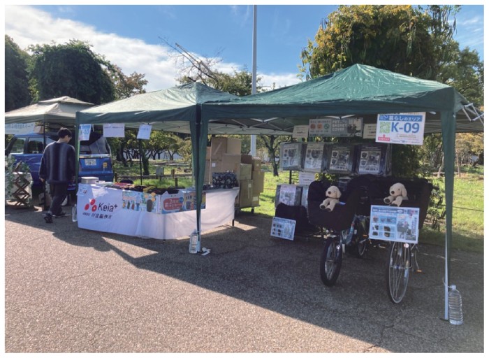 同日11月1日から2日間にわたって服部緑地にて行われた「リ:ボーン アニマルバトンフェスタ2025」にも出展した。会場には多くのペット連れの方々が訪れ、盛況であった。弊社ブースでは主に「ペットインバスカットカバー」の展示、直接販売を行った。